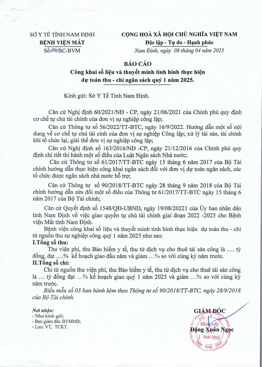 Công khai tình hình thực hiện dự toán thu chi năm 2025 quý 1