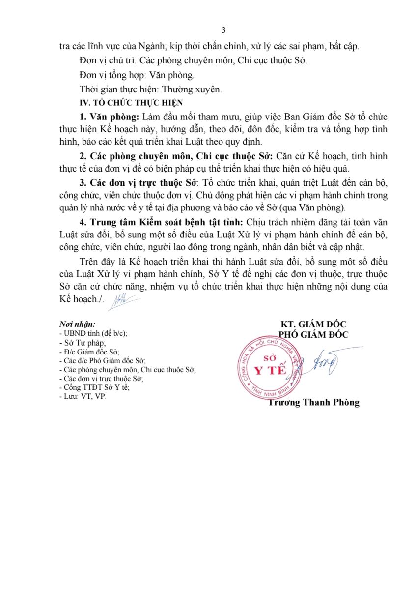 Kế hoạch triển khai thi hành Luật sửa đổi, bổ sung một số điều của Luật Xử lý vi phạm hành chính