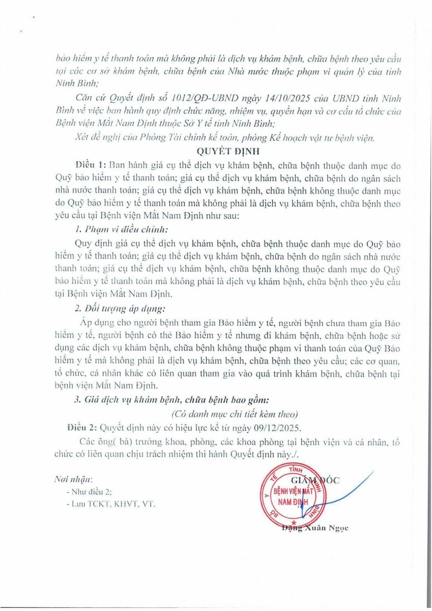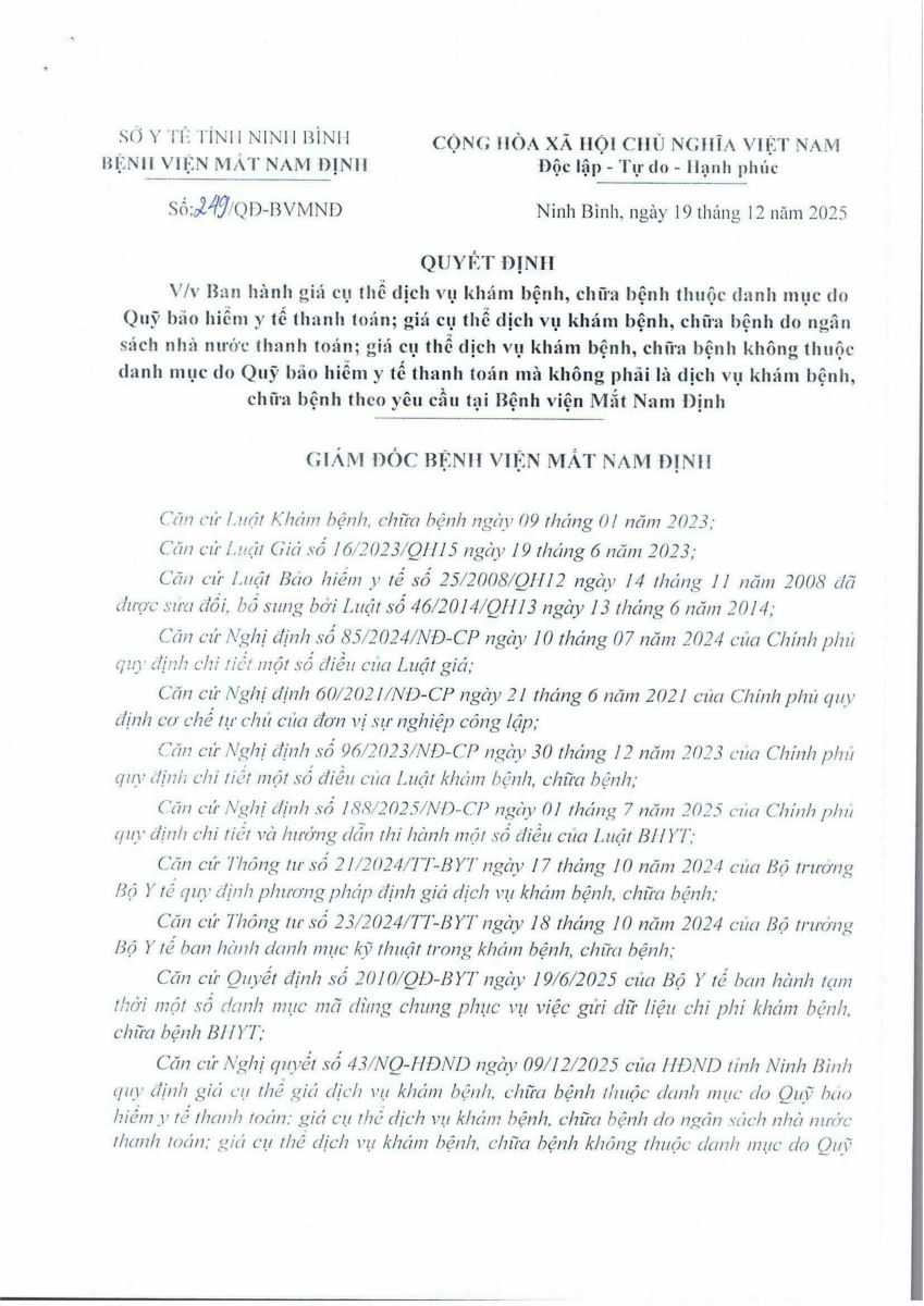 Quyết định ban hành giá cụ thể dịch vụ khám bệnh, chữa bệnh...