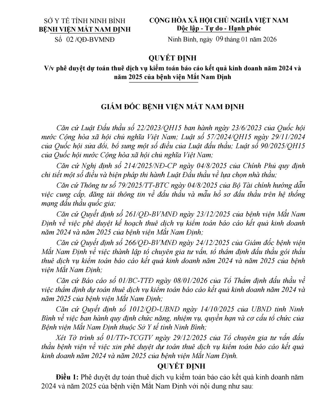 Quyết định vv Phê duyệt dự toán thuê dịch vụ kiểm toán báo cáo kết . . .