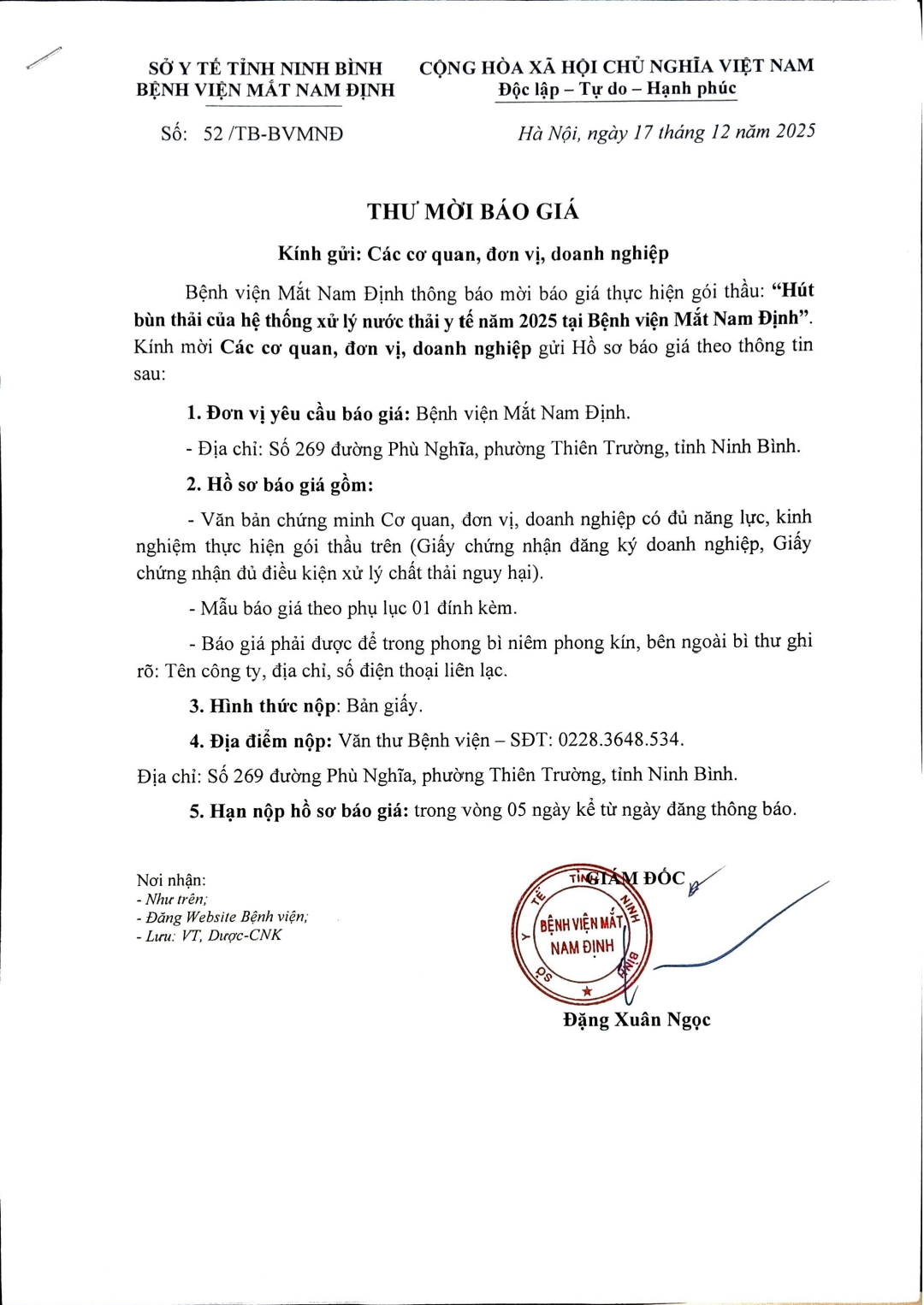 KHUNG GIÁ DỊCH VỤ KHÁM BỆNH, CHỮA BỆNH TẠI BỆNH VIỆN MẮT TỈNH NAM ĐỊNH