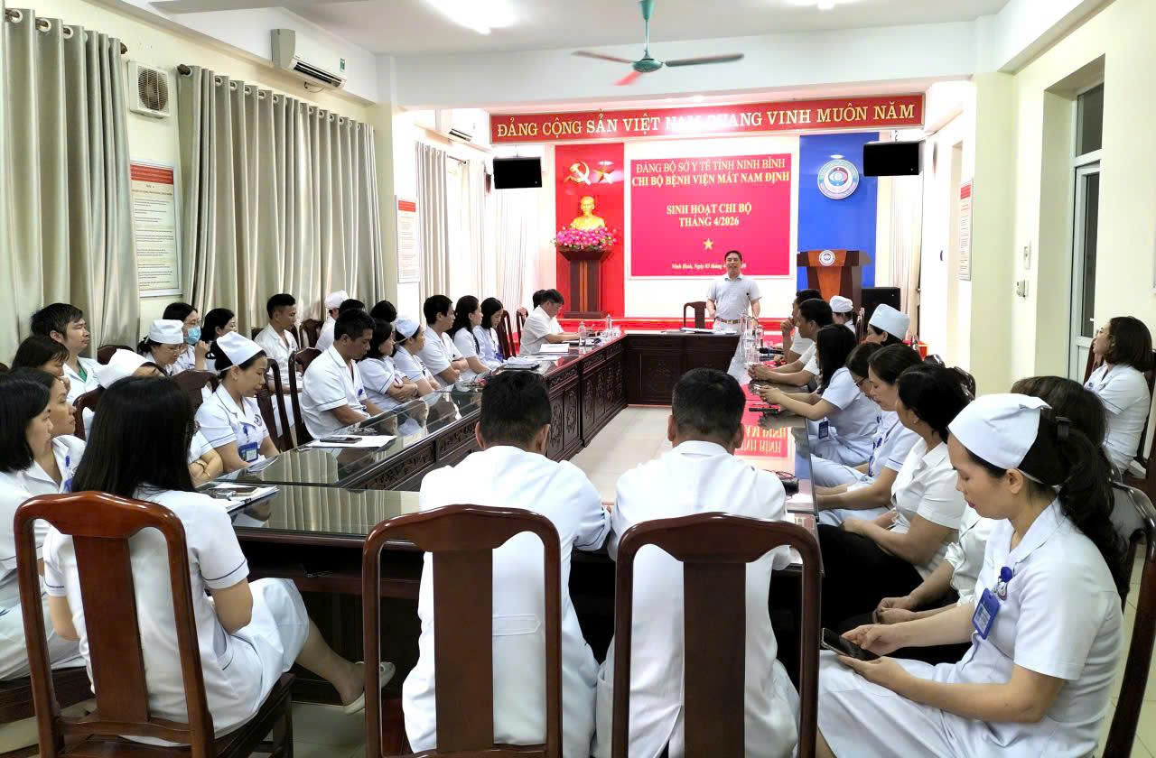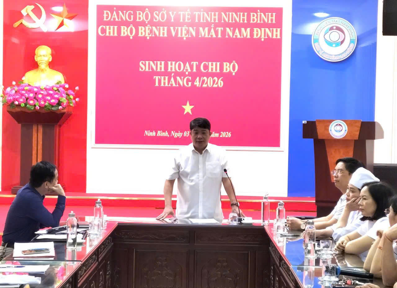 Trong không khí thi đua lập thành tích chào mừng các ngày lễ lớn của đất nước, chiều ngày 03/04/2026, tại hội trường tầng 4, Chi bộ Bệnh viện Mắt Nam Định đã tổ chức buổi sinh hoạt Chi bộ định kỳ nhằm quán triệt các nội dung quan trọng trong các văn bản chỉ đạo của Đảng. Đây là hoạt động chính trị quan trọng nhằm đánh giá công tác tháng qua và triển khai các nhiệm vụ trọng tâm trong giai đoạn mới.
