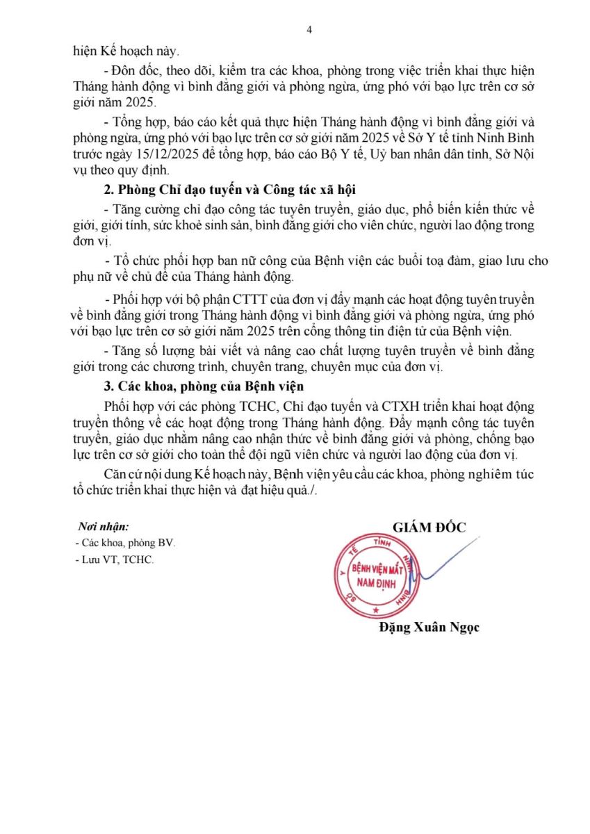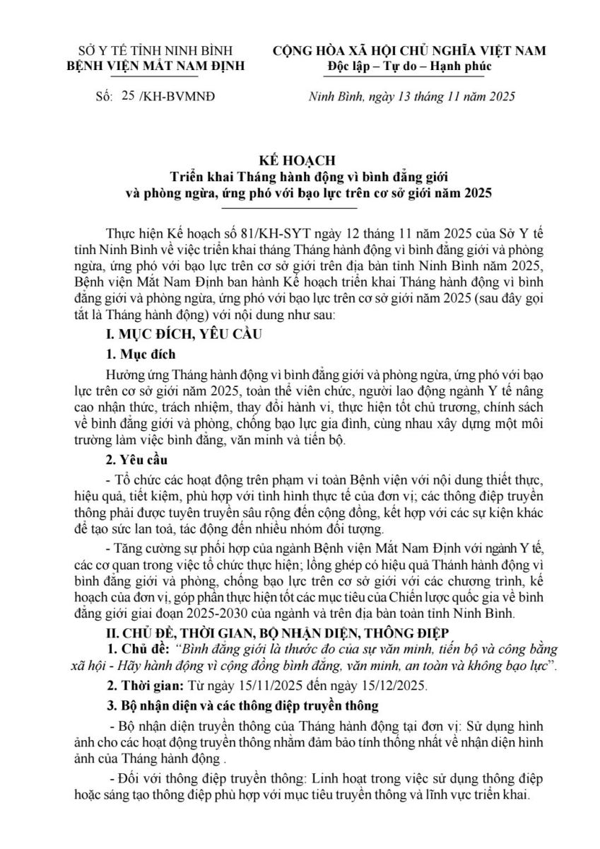 Kế hoạch triển khai tháng hành động vì bình đẳng giới và phòng ngừa, ứng phó với bạo lực trên cơ sở giới năm 2025
