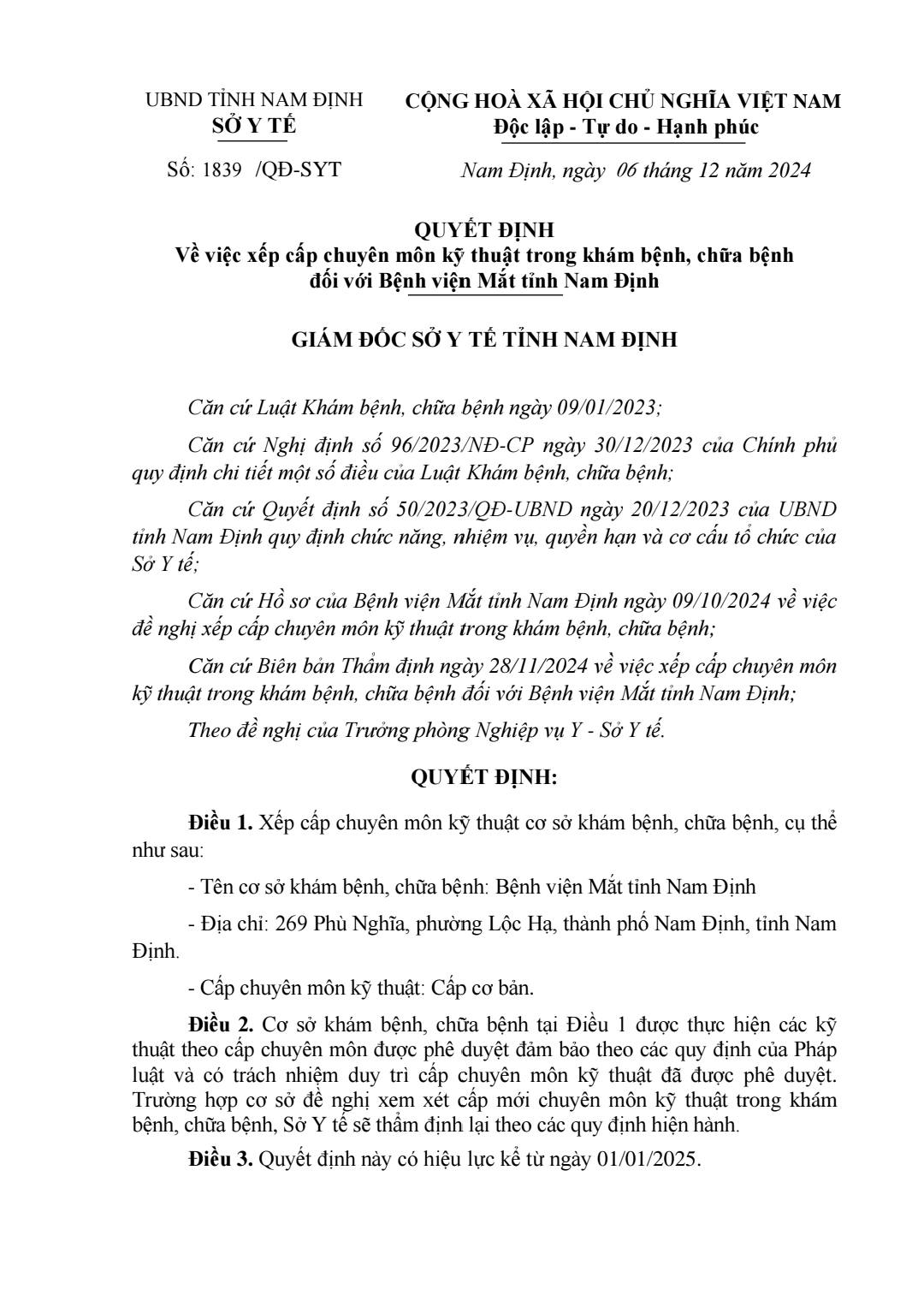 Quyết định vv xếp cấp chuyên môn kỹ thuật trong khám bệnh, chữa bệnh . . .