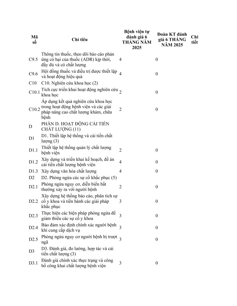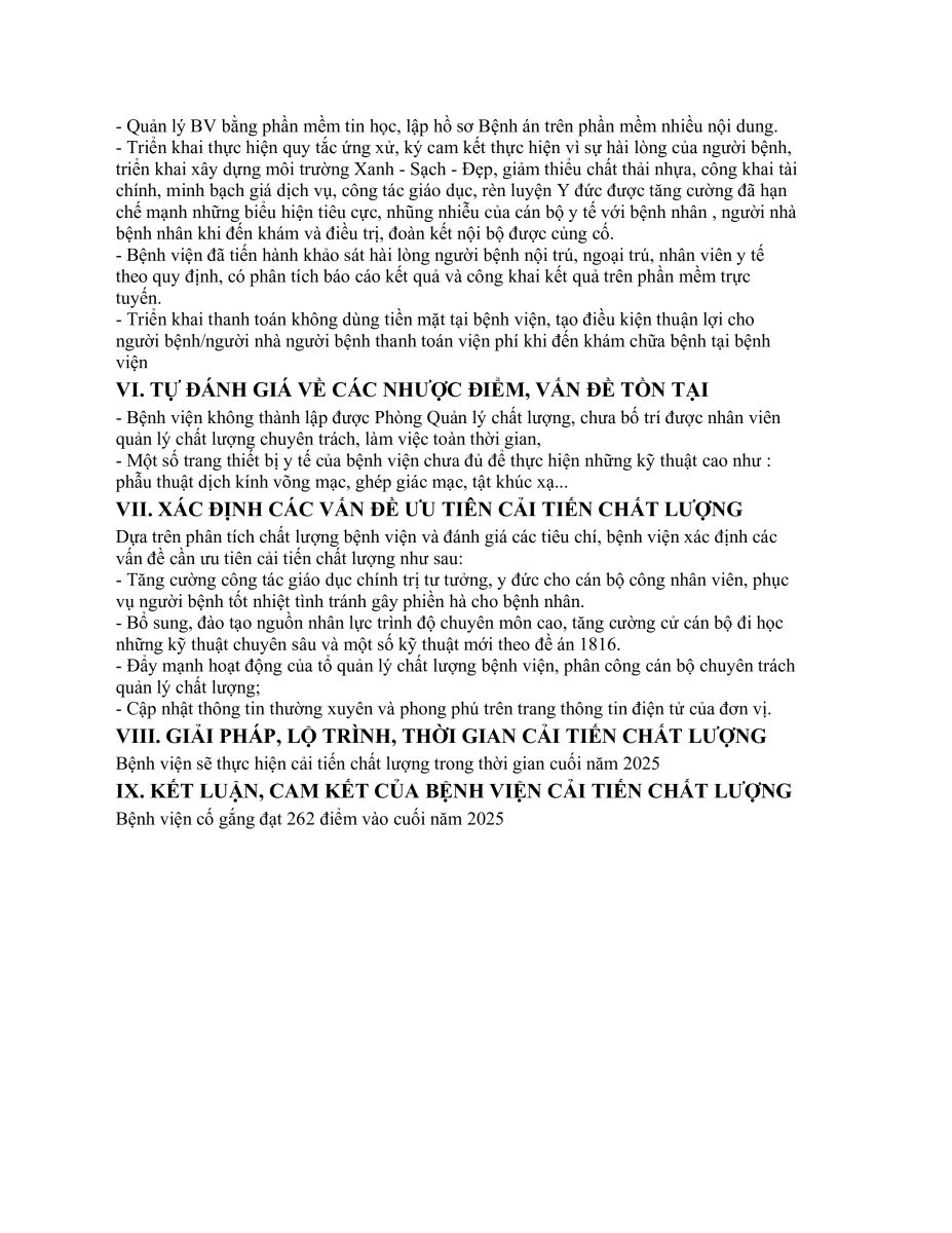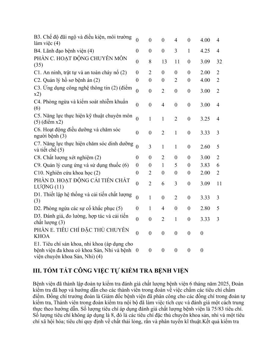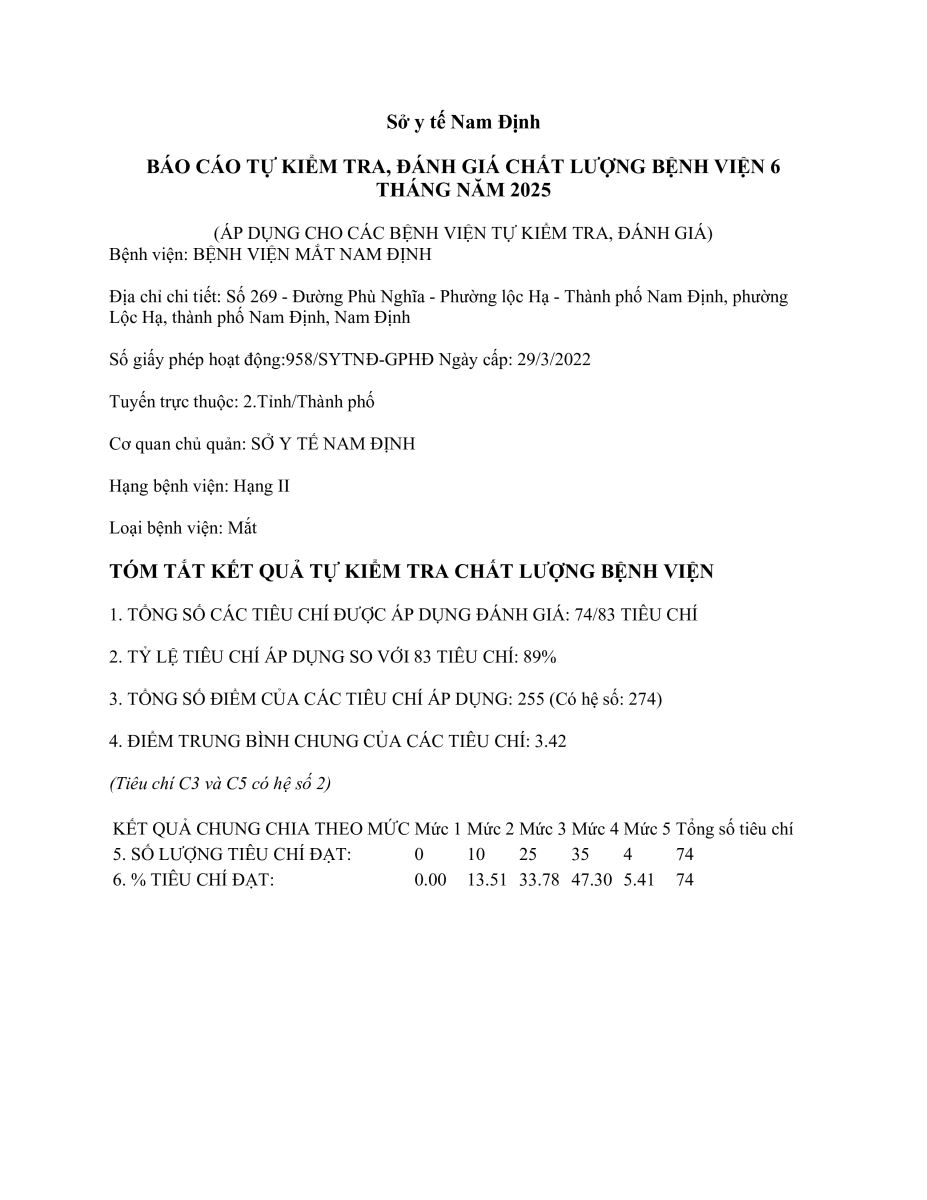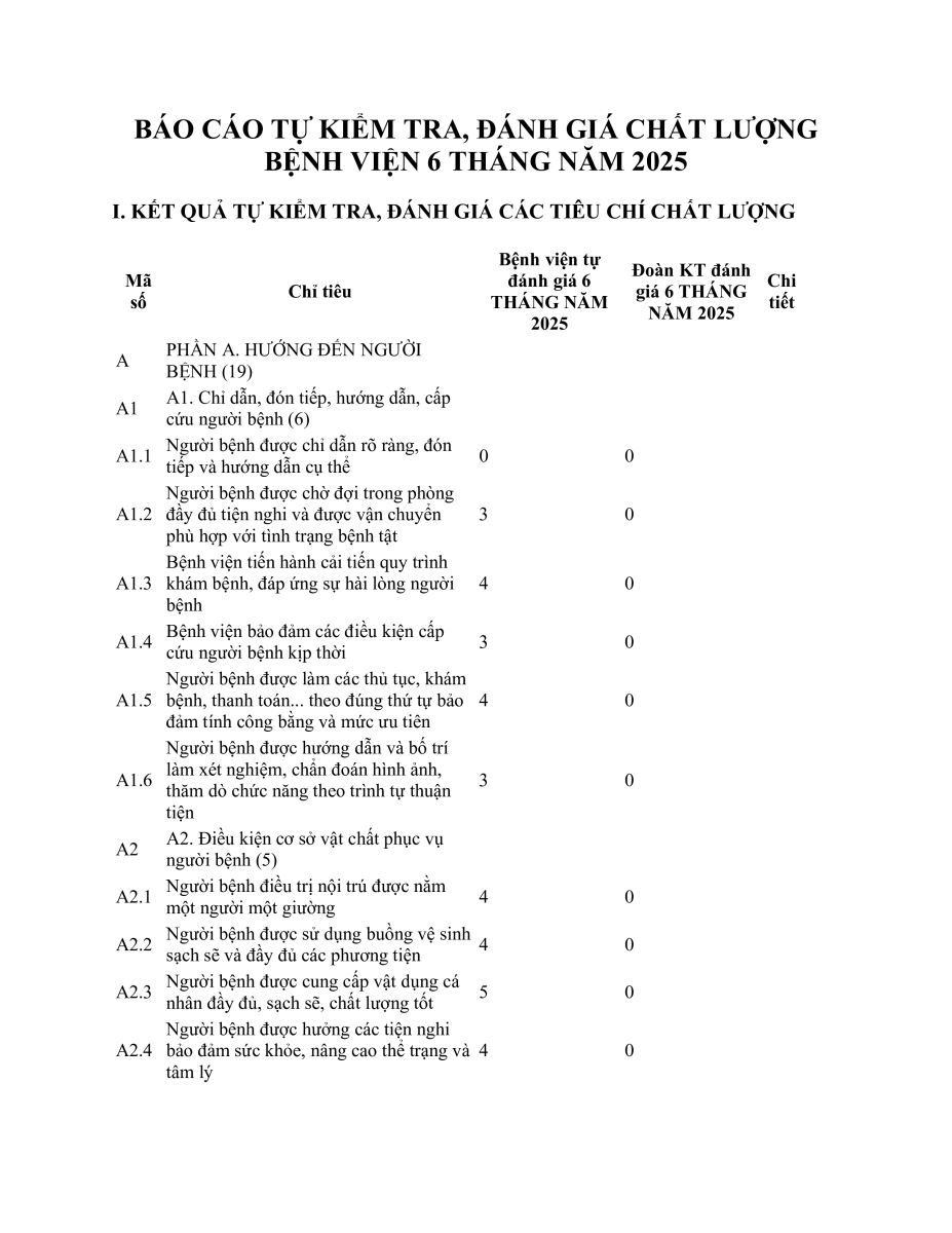 BÁO CÁO TỰ KIỂM TRA, ĐÁNH GIÁ CHẤT LƯỢNG BỆNH VIỆN 6 THÁNG NĂM 2025
