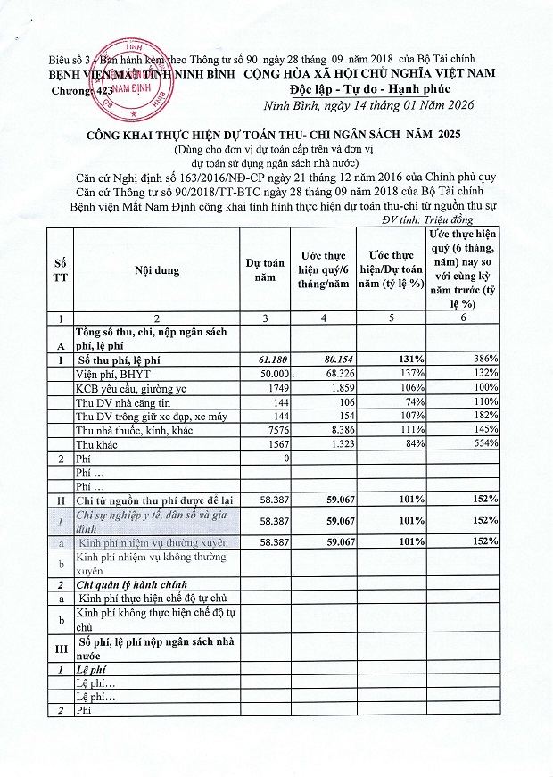 Công khai tình hình thực hiện dự toán thu chi 6 tháng đầu năm 2025
