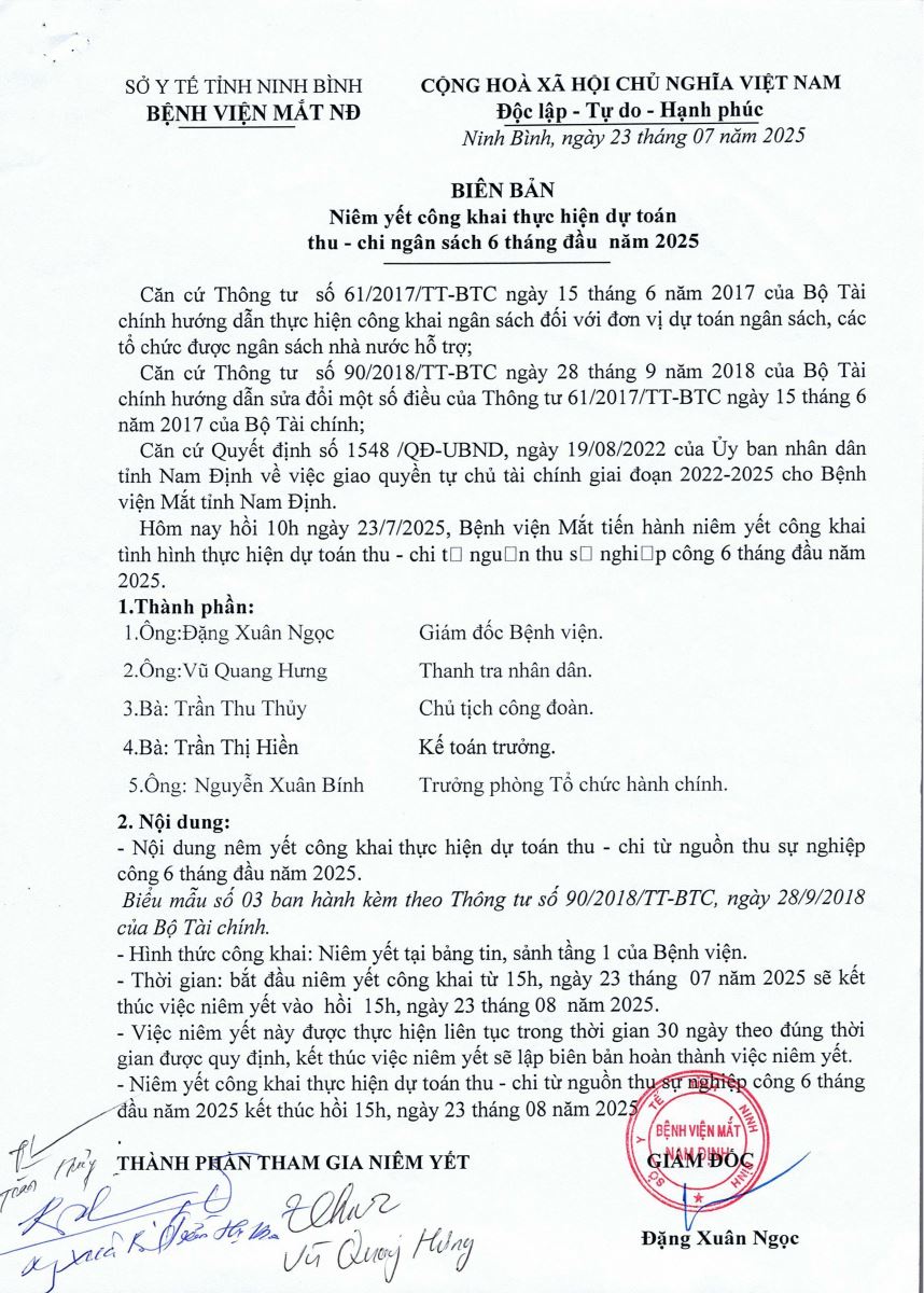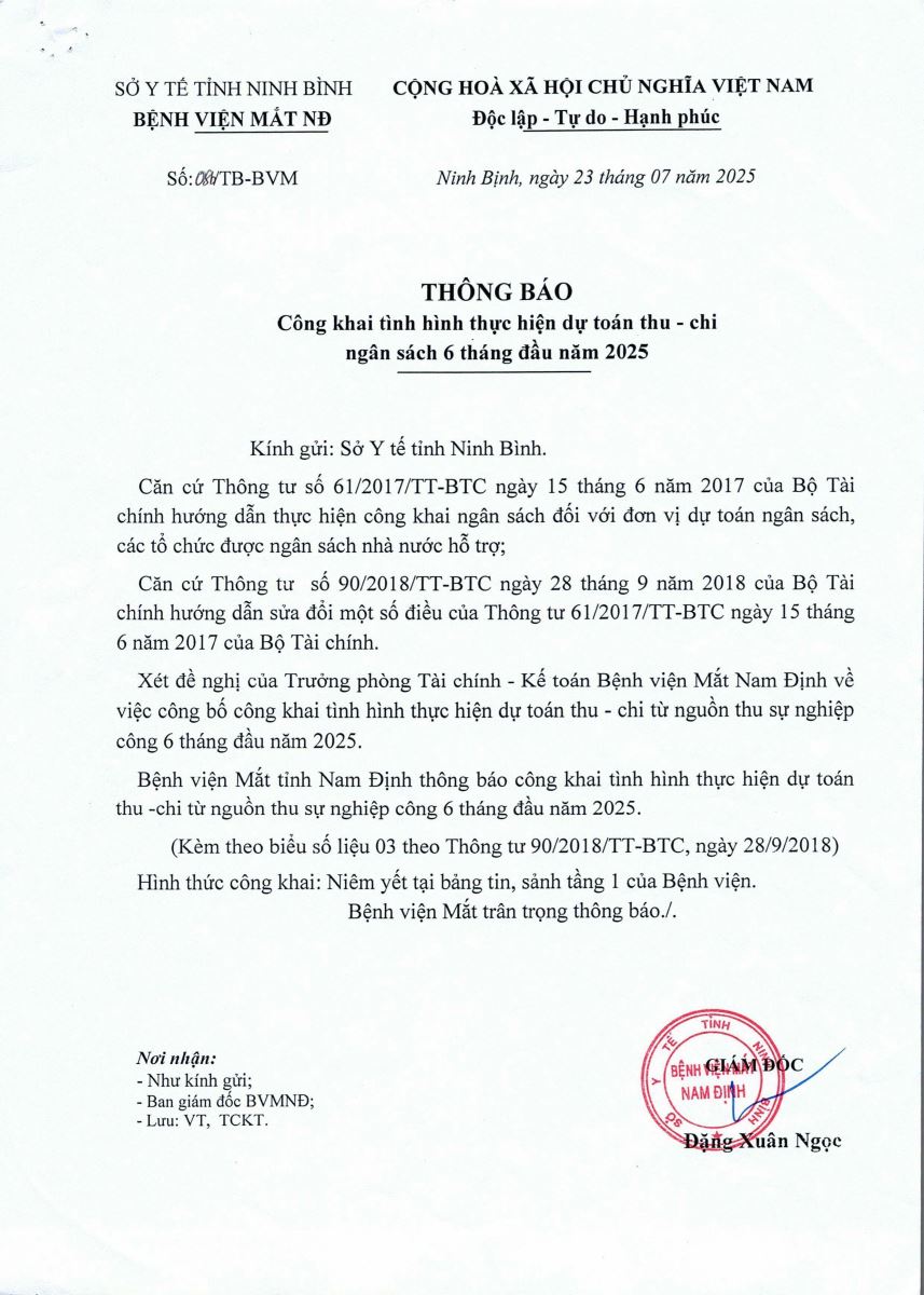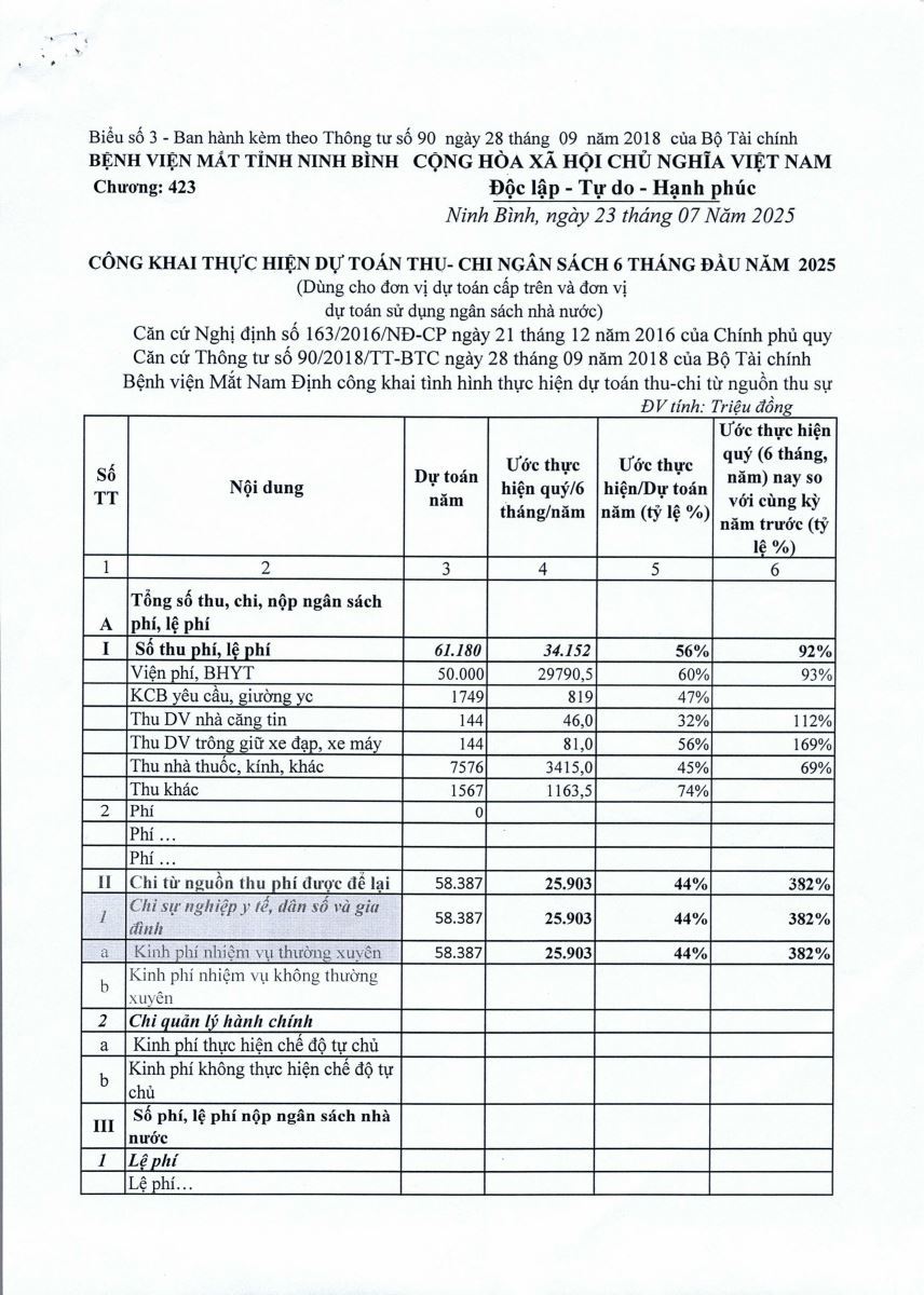 Công khai tình hình thực hiện dự toán thu chi 6 tháng đầu năm 2025
