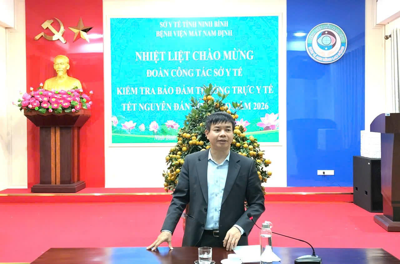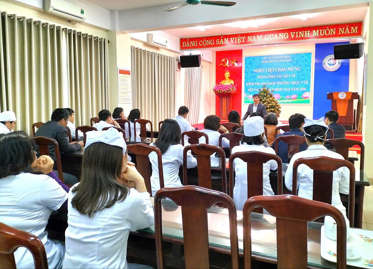 Trong không khí hối hả những ngày giáp Tết Nguyên đán Bính Ngọ 2026, chiều ngày 11/2/2026, đoàn công tác của Sở Y tế tỉnh Ninh Bình do đồng chí Ngô Ngọc Quang - Phó Giám đốc Sở Y tế làm trưởng đoàn đã có buổi kiểm tra thực tế và chúc Tết tập thể cán bộ, nhân viên y tế tại Bệnh viện Mắt Nam Định.