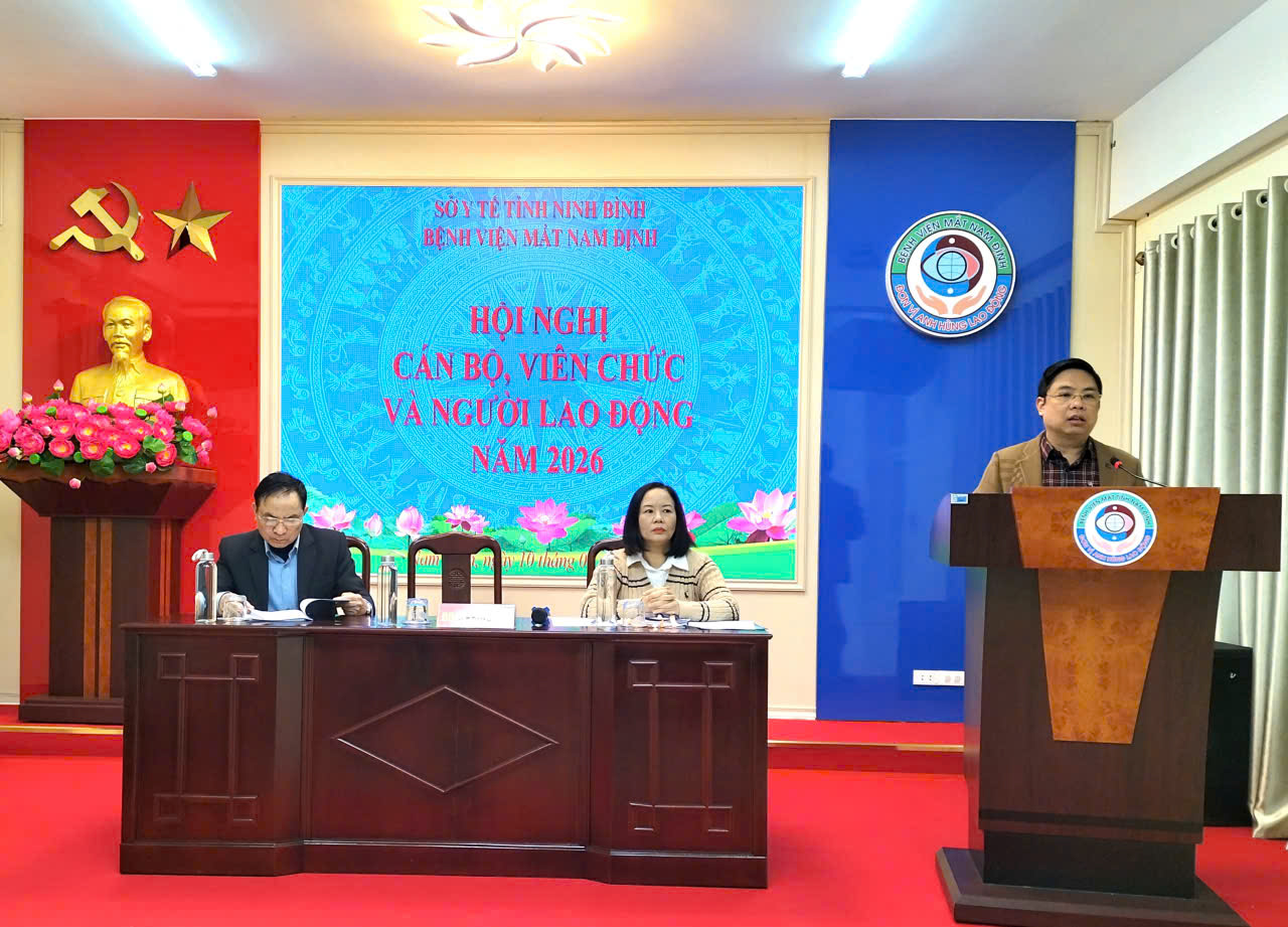 Ngày 10/01/2026, trong không khí phấn khởi của những ngày đầu năm mới, Bệnh viện Mắt tỉnh Nam Định đã tổ chức thành công Hội nghị viên chức và người lao động năm 2026. Đây là sự kiện quan trọng nhằm đánh giá kết quả hoạt động của năm 2025, đồng thời phát huy quyền làm chủ, sức mạnh tập thể trong việc xây dựng định hướng phát triển đơn vị năm 2026.