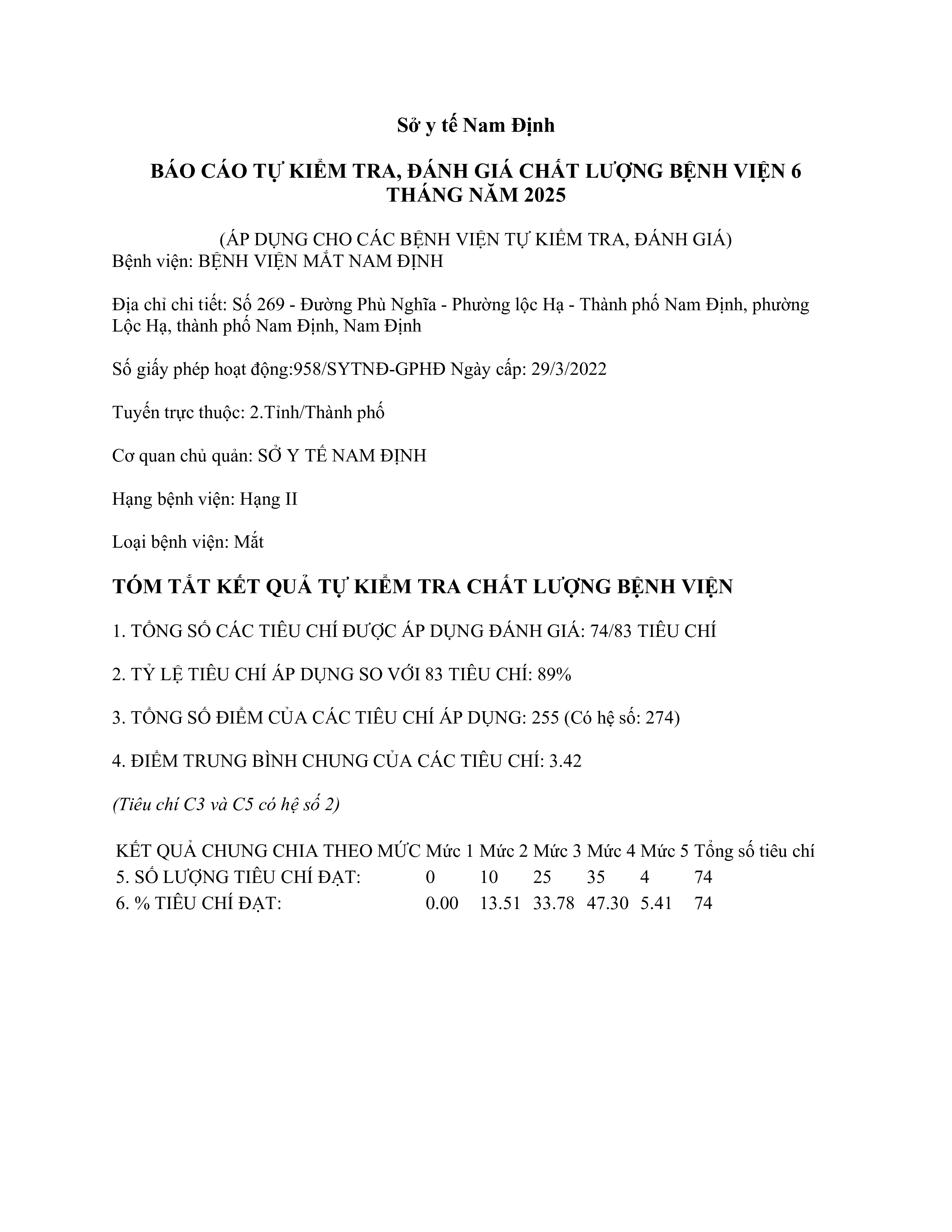 BÁO CÁO TỰ KIỂM TRA, ĐÁNH GIÁ CHẤT LƯỢNG BỆNH VIỆN 6 THÁNG NĂM 2025