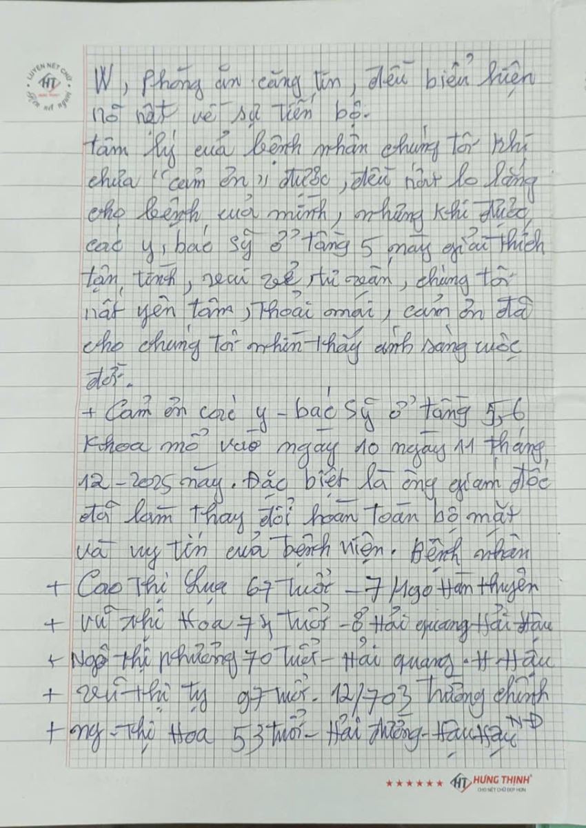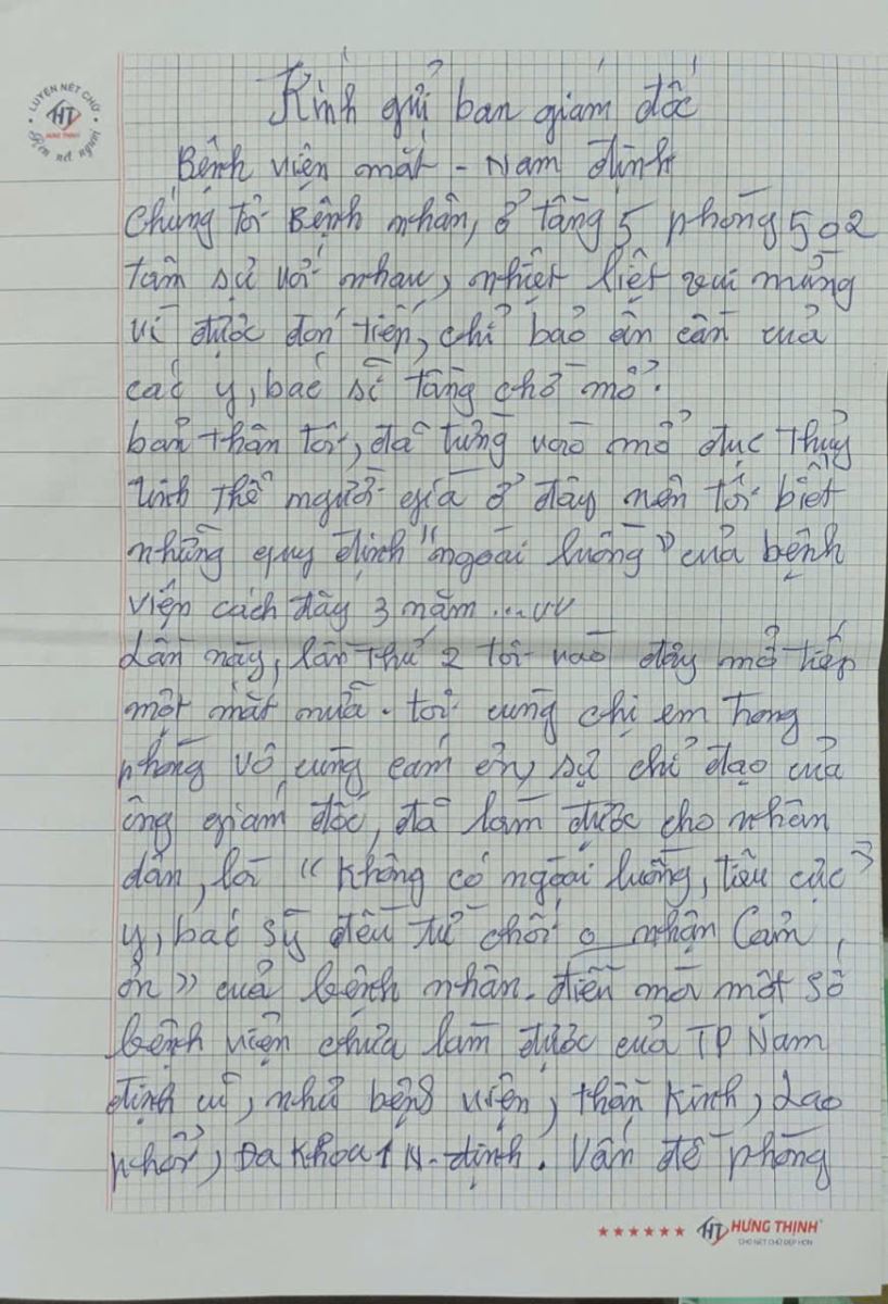 Những bức thư tay của người bệnh & người nhà người bệnh luôn là món quà tinh thần và là niềm động lực đối với đội ngũ nhân viên Bệnh viện Mắt Nam Định