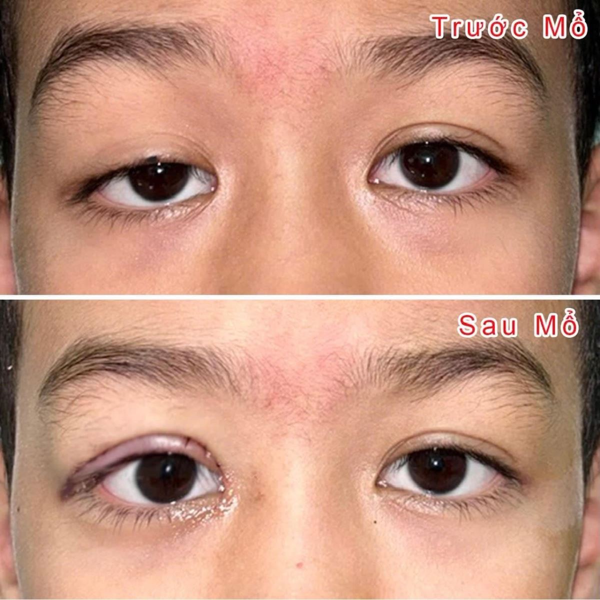 Chỉ sau 20 phút phẫu thuật, mắt phải hết trợn, 2 bên cân đối, trông hiền hơn, không sưng đau, và không có sẹo